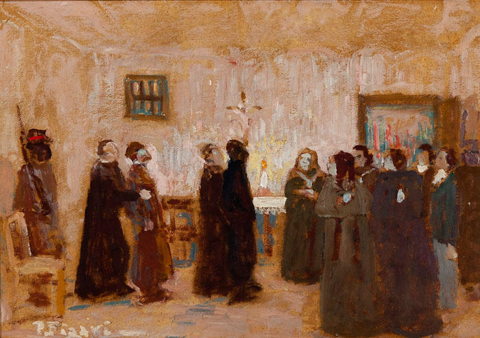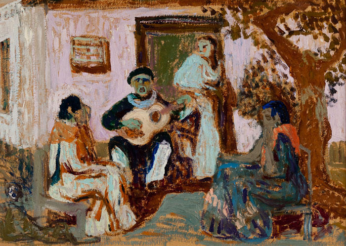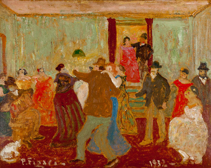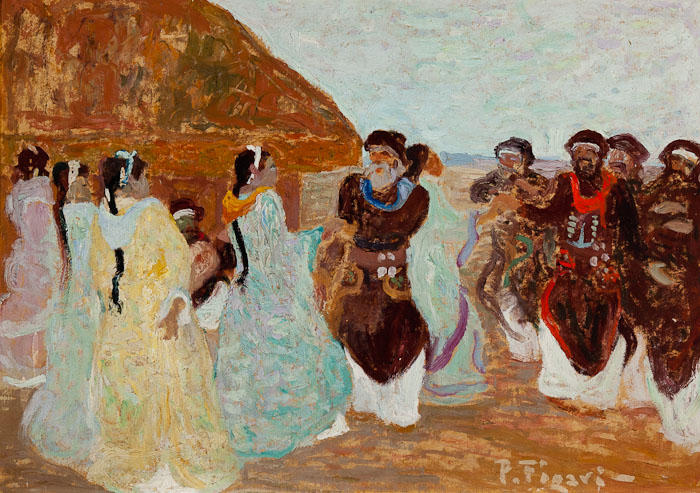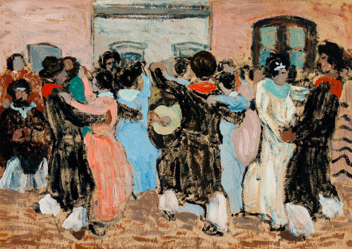 We exhibit paintings by Pedro Figari and his son Juan Carlos Figari, who treated local scenes of everyday life in Montevideo and in Uruguay from a unique point of view. Pedro Figari is a painter of spots, not of lines. He paints the past based on his affective memories. In his paintings we can find collective scenes of the descendants of the black slaves, such as parties, christenings and weddings, dances brought from Africa, such as the Candombe, and traditional South American dances, such as the Pericón and the Gato, popular street bands, guitars and drums as well as rural scenes. His work portrays rural landscapes, with their huts and moonlit skies, colonial patios, gauchos, blacks and criollos, all part of Uruguayan society. It is part of a Latin American artistic process characterized by a search for local content.