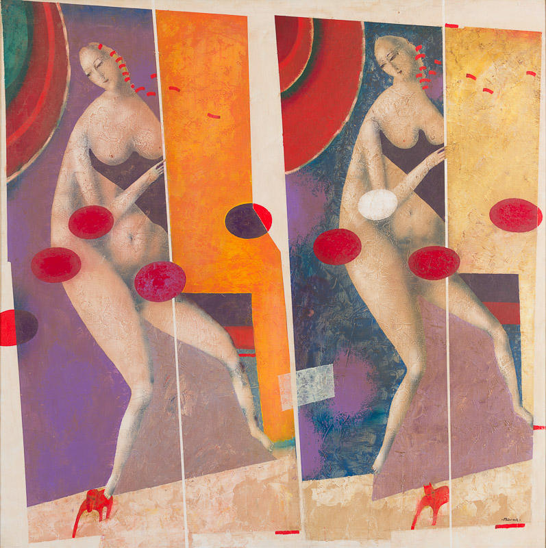 Makarenko views the female form with a realistic and surrealistic eye at the same time. His style combines features of the Renaissance and the Twentieth Century, and the result is an effect of mystery, enigma and strangeness.