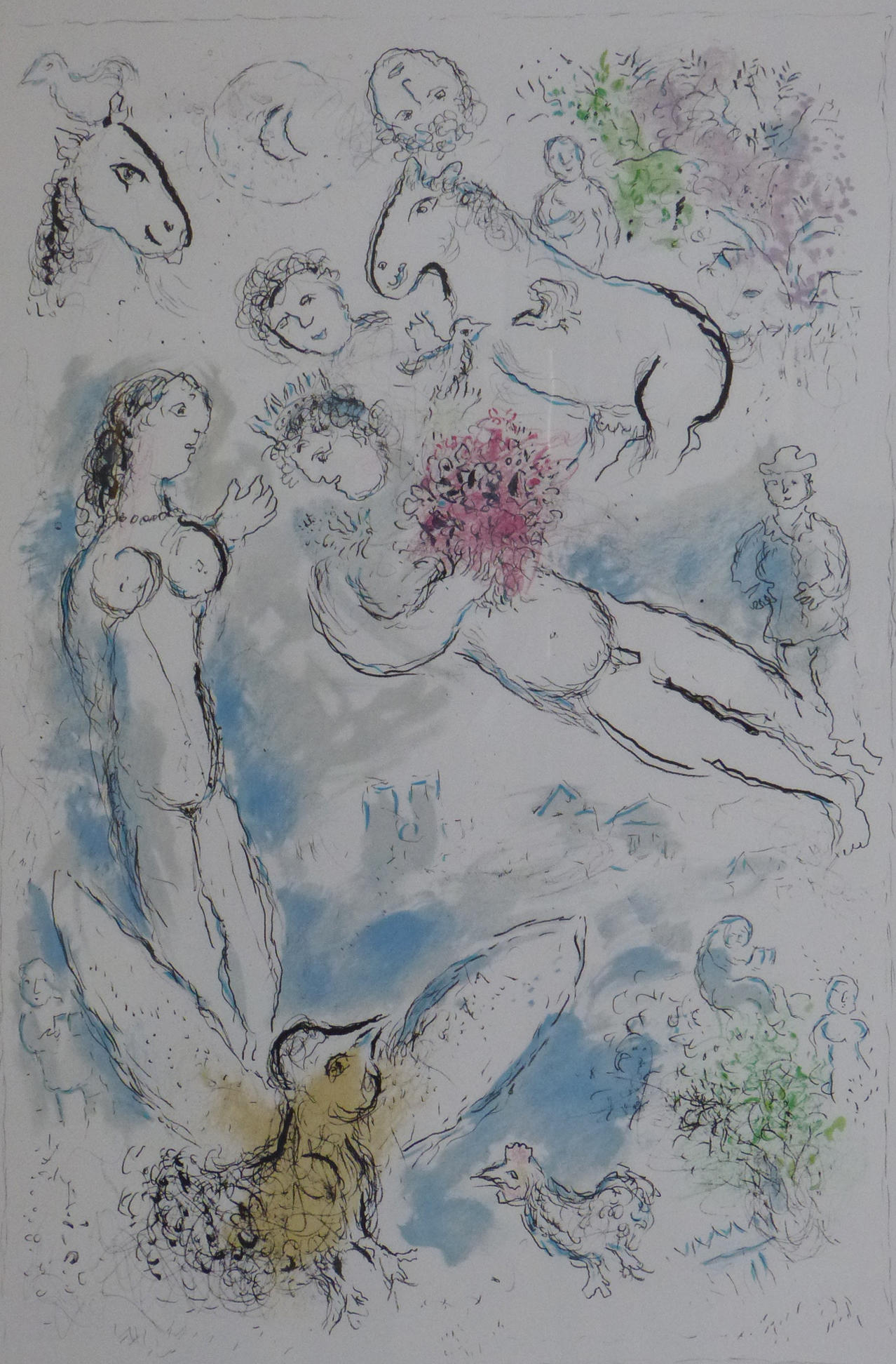 Marc Chagall (1887 - 1985) originally depicted many biblical themes reflecting his Jewish heritage. His works are connected with different currents of modern art and are rich in references to his childhood, communicating joy and optimism by the use of strong and vivid colors.