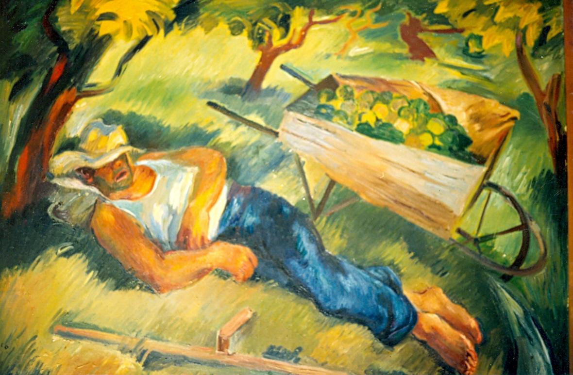 Una pintura que ilustra un mural en exhibición en el Museo de Ralli