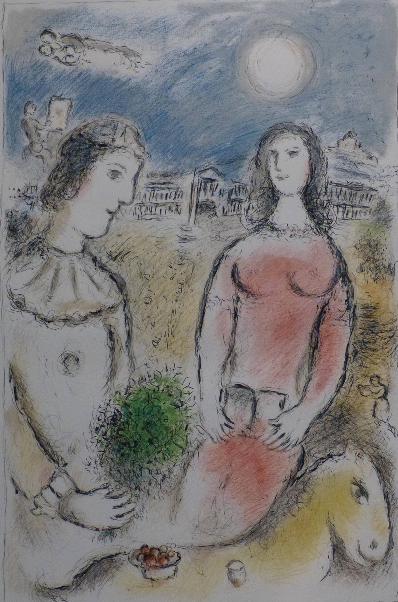Marc Chagall (1887- 1985), de origen Bielorruso representó muchos temas bíblicos, reflejando así su herencia judía. Su trabajo está conectado con diferentes corrientes del arte moderno. En sus obras abundan las referencias a su niñez, comunicando la felicidad y el optimismo a aquellos que las observan mediante intensos y vívidos colores.