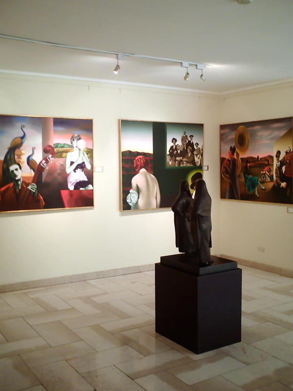 Su pintura muestra un realismo casi metafísico. En ella las figuras estilizadas son modeladas como esculturas. Trabaja la luz en forma delicada creando un ambiente onírico.